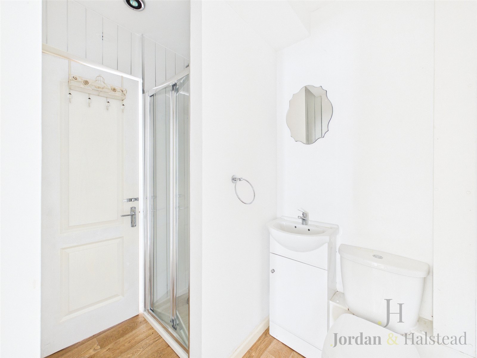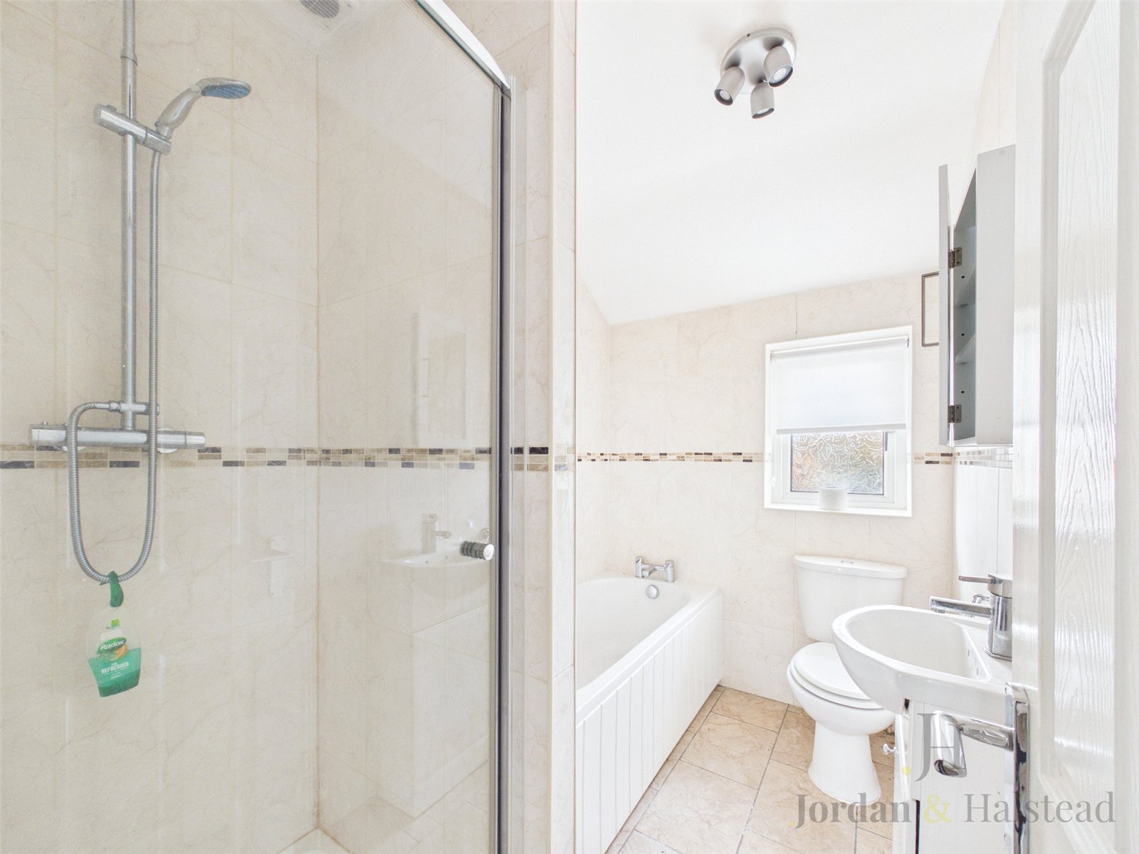 Upstairs, there are three double bedrooms, two of which include fitted mirrored wardrobes. The principal bedroom benefits from an en-suite shower room. A spacious family bathroom, fully tiled and featuring both a separate shower and bath.