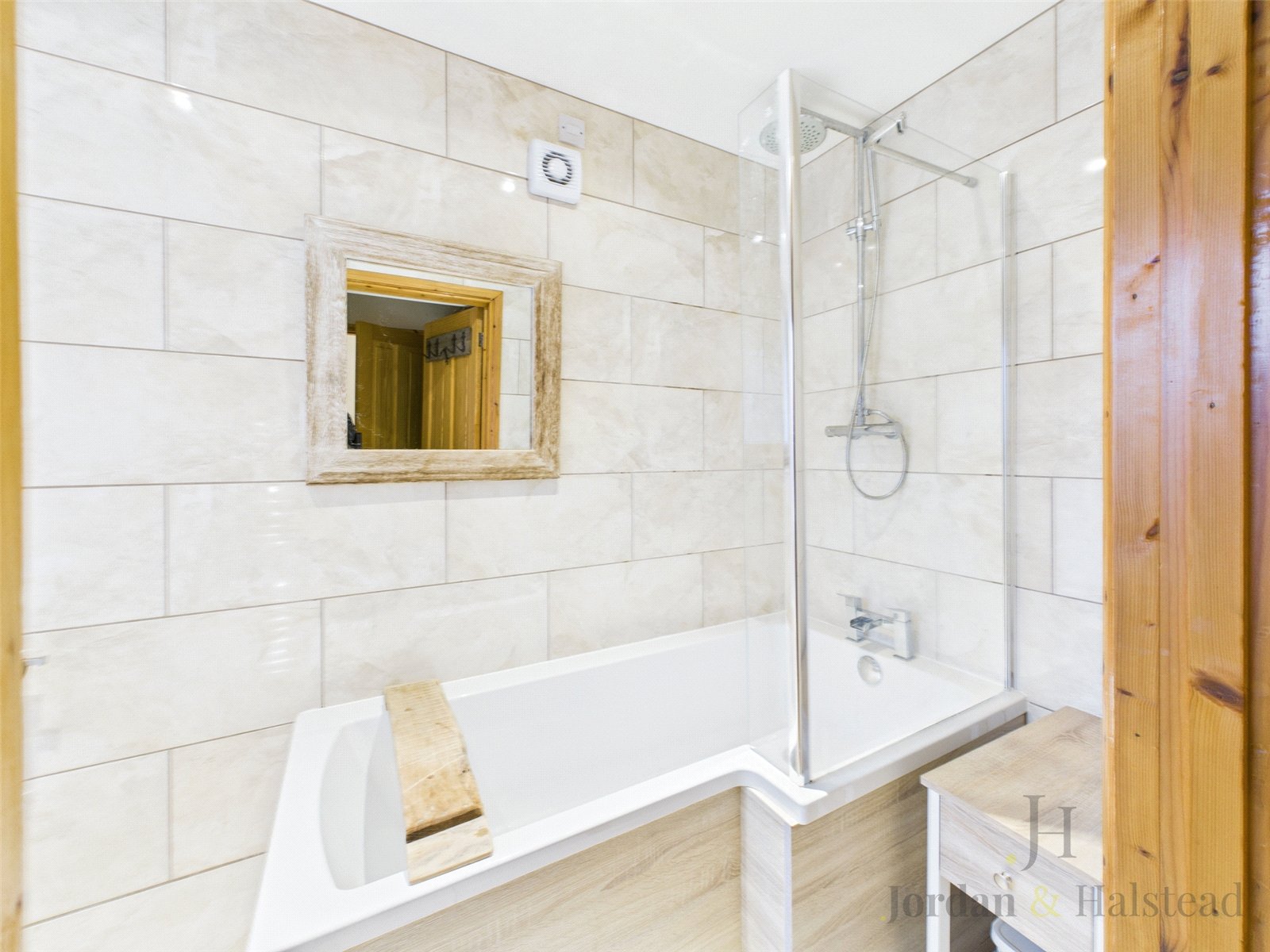 To the first floor, the main bedroom has an ensuite shower room, this room is again filled with natural light owing to the two Velux windows and the window overlooking the south facing rear garden. There are a further three double bedrooms of good proportions on this floor and a shower room. Access to the loft is provided from the landing, we are informed that the loft has been boarded.