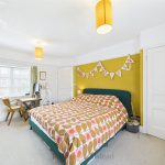 The master bedroom is a spacious double with double glazed windows to both the front and rear elevations, a feature fireplace, a radiator, and a door leading to the en-suite Jack and Jill bathroom. This stylish bathroom includes a window to the front elevation, a wall-hung wash hand basin, a corner enclosed shower, part-tiled walls, and tiled flooring.