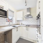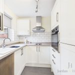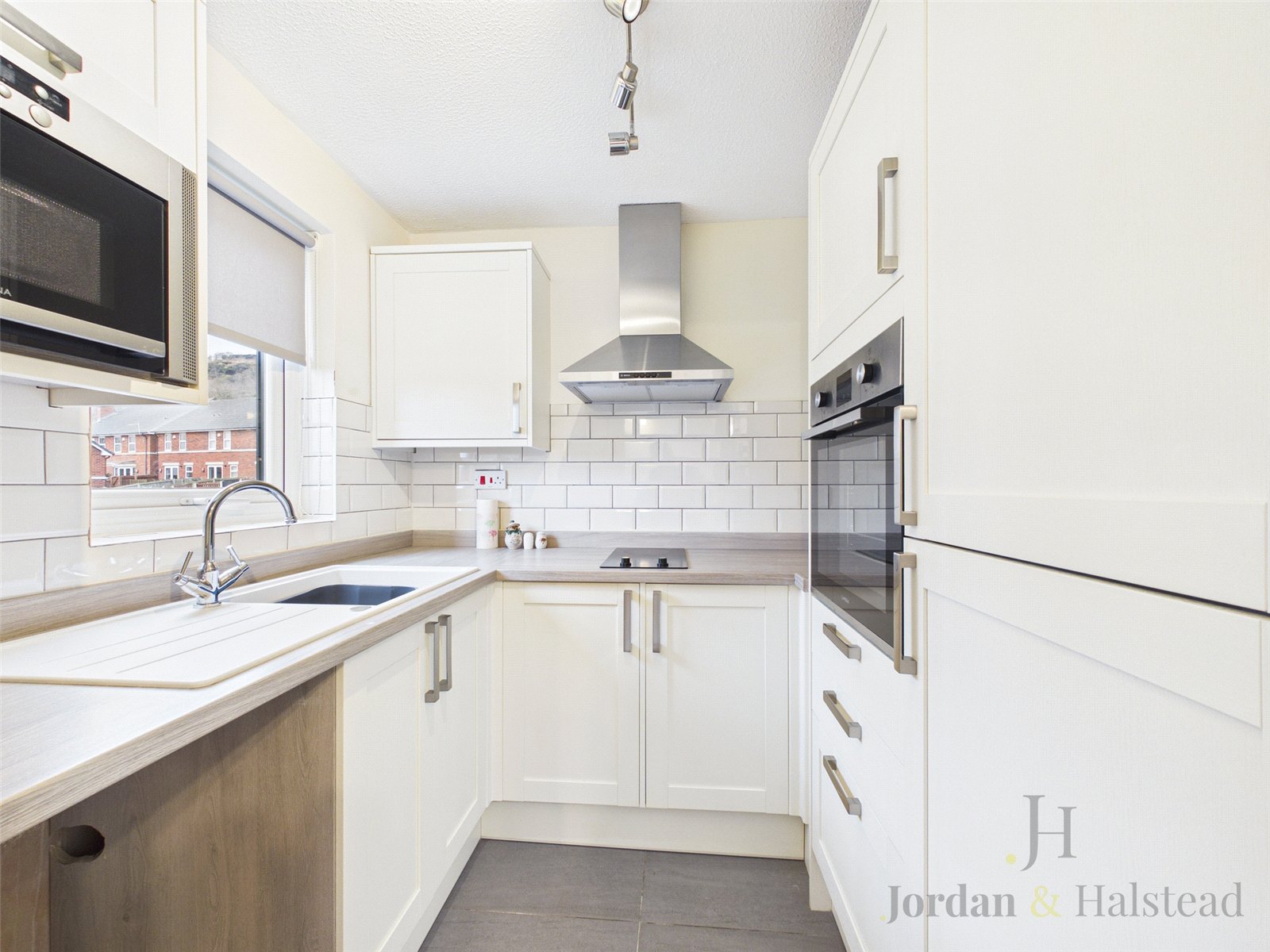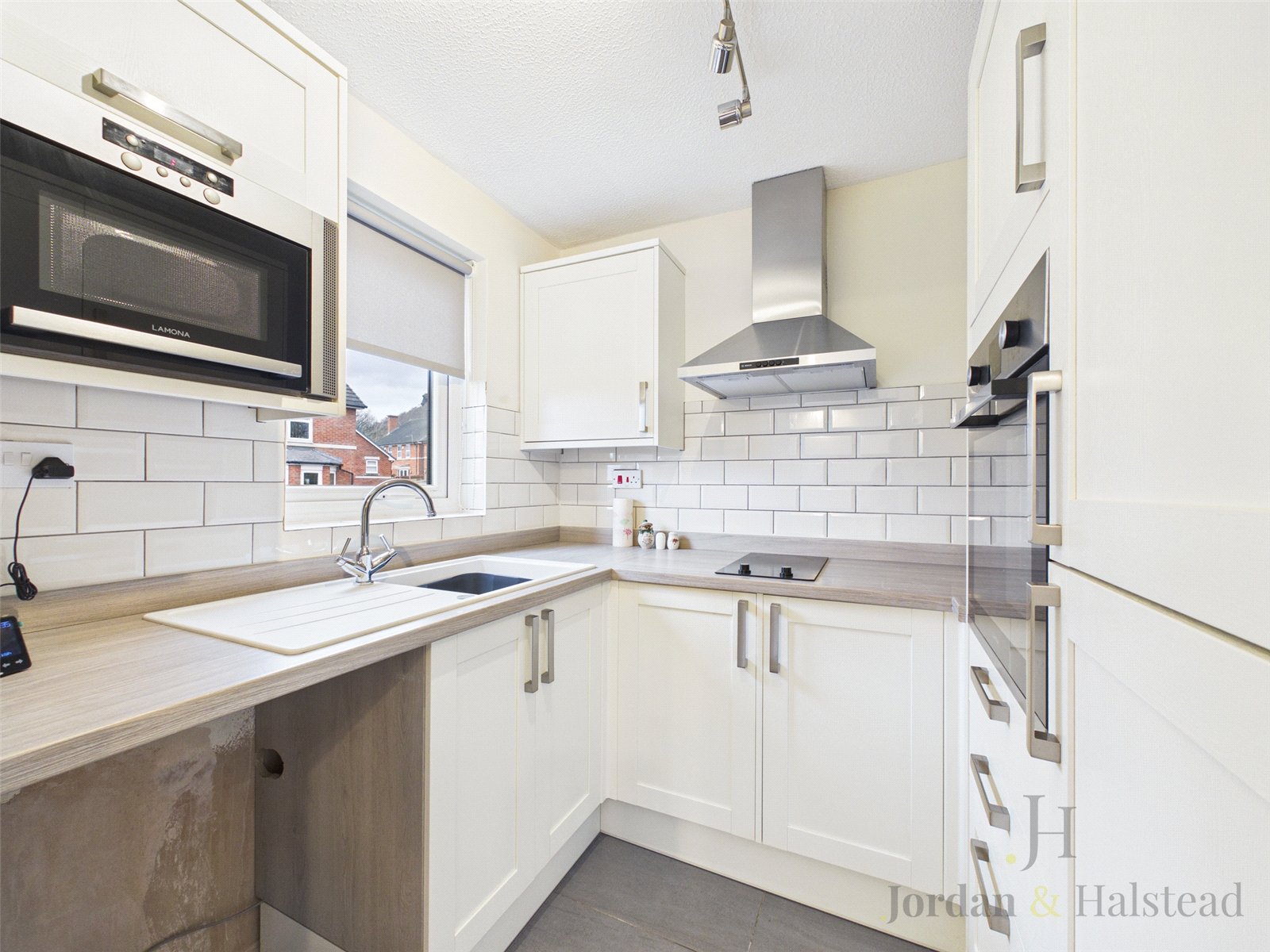 From the lounge, the modern kitchem, with a range of wall and base units, has a built in oven, hob, microwave and fridge freezer.