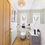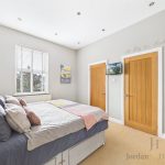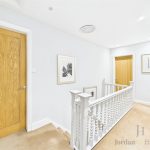 To the first floor hosts four generously sized bedrooms, two of which benefit from beautifully presented en-suite bathrooms. The principal bedroom, positioned at the front of the property, features striking wood panelling, a good size wardrobe, and a stylish en-suite. The remaining three bedrooms are all comfortable doubles, one with its own en-suite. A spacious family bathroom completes the floor, offering a rolled-top bath and a separate shower.