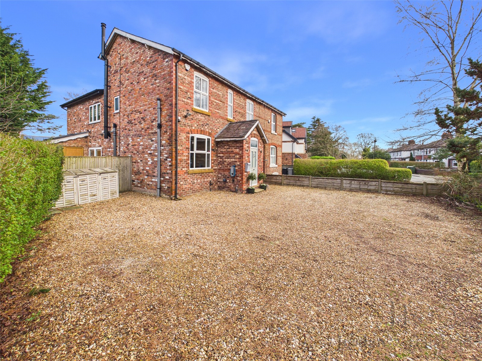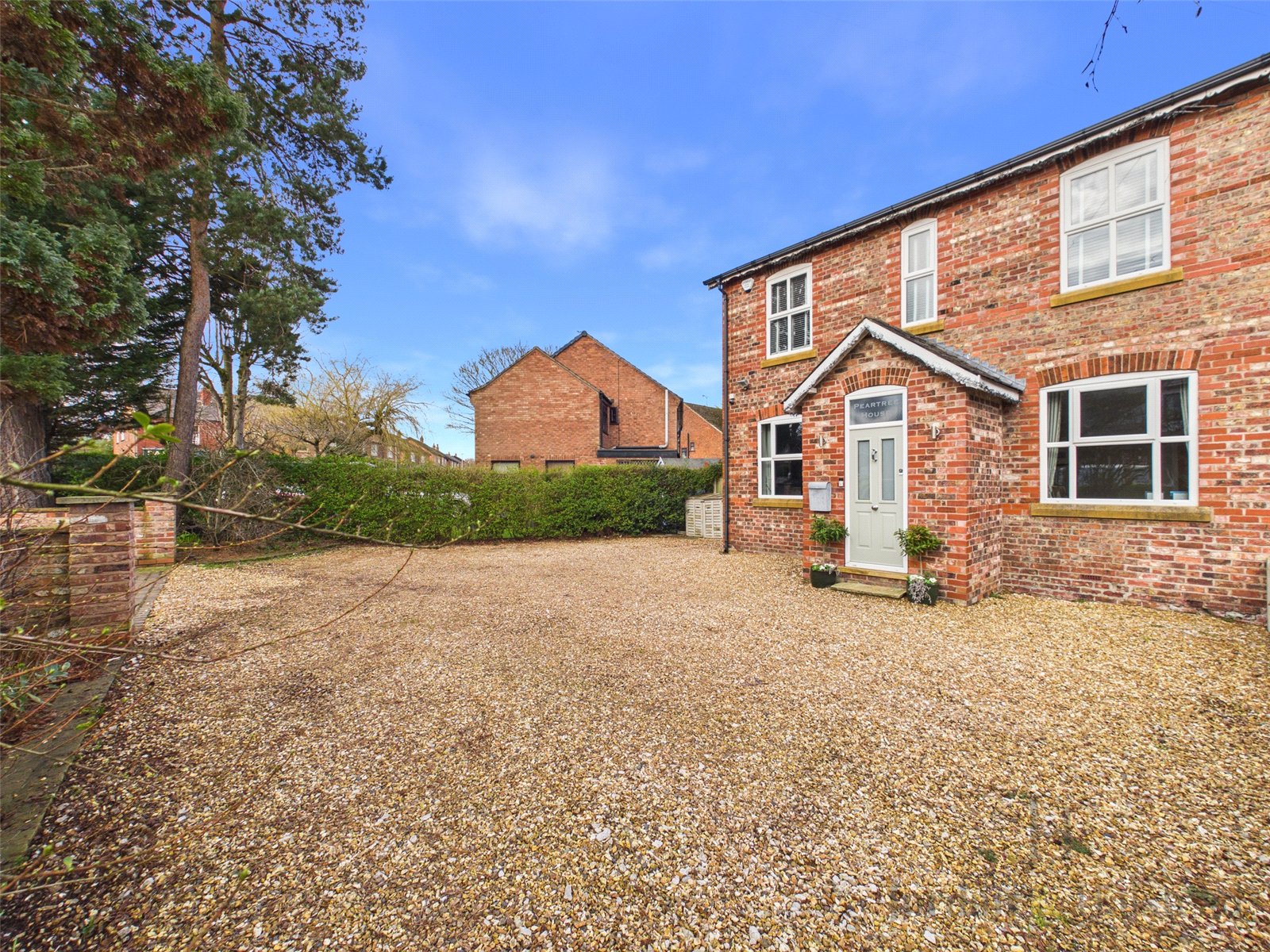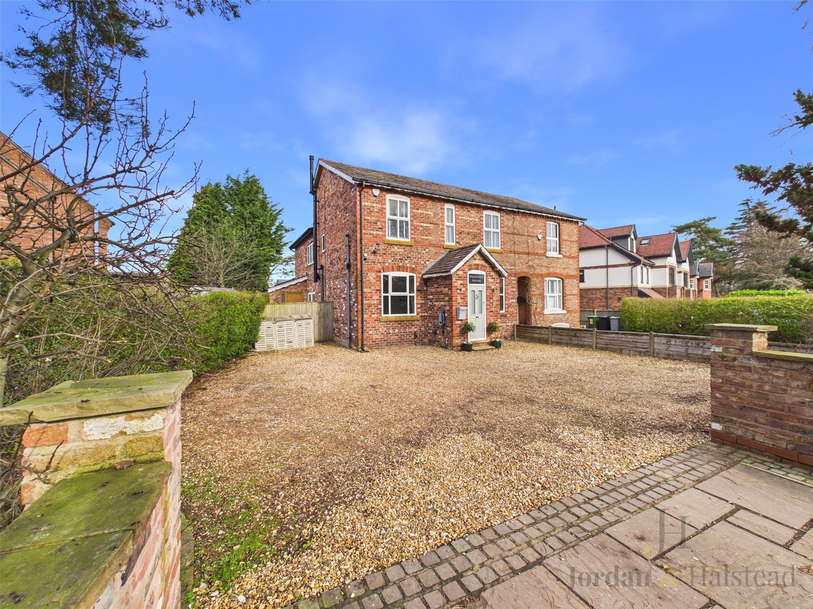 Welcomed through charming brick walls on either side into a beautifully paved frontage, offering ample off-road parking for several vehicles and a wall mounted EV charger.