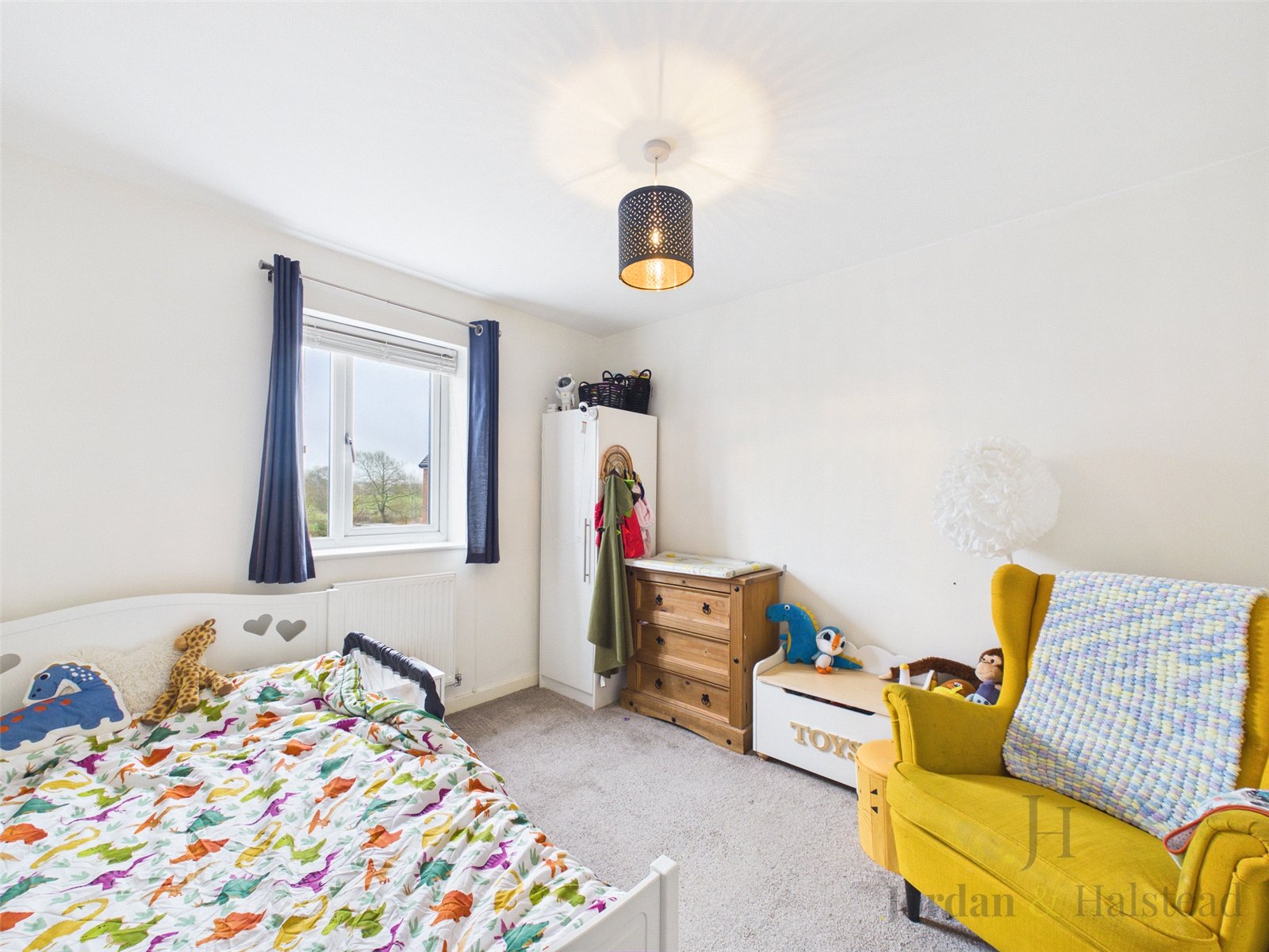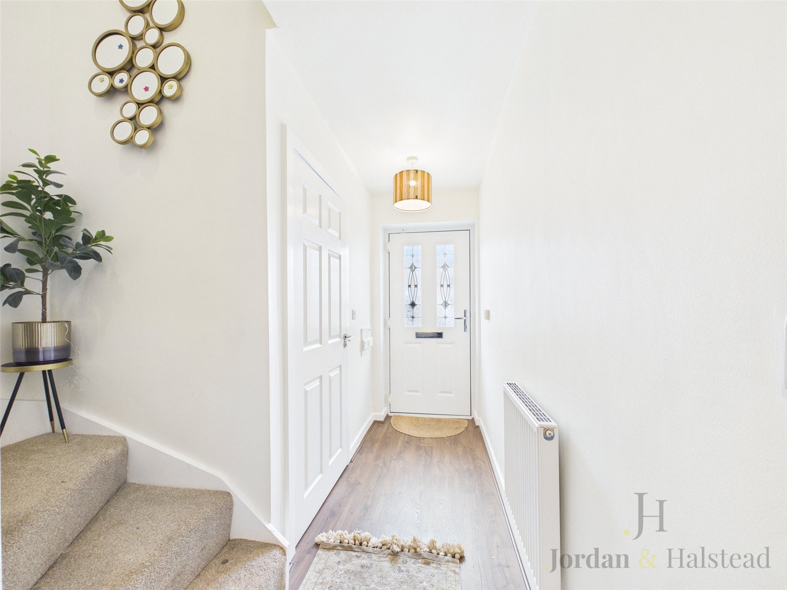 From the entrance hall, the stairs lead to the upstairs landing, which connects all three bedrooms and the family bathroom.