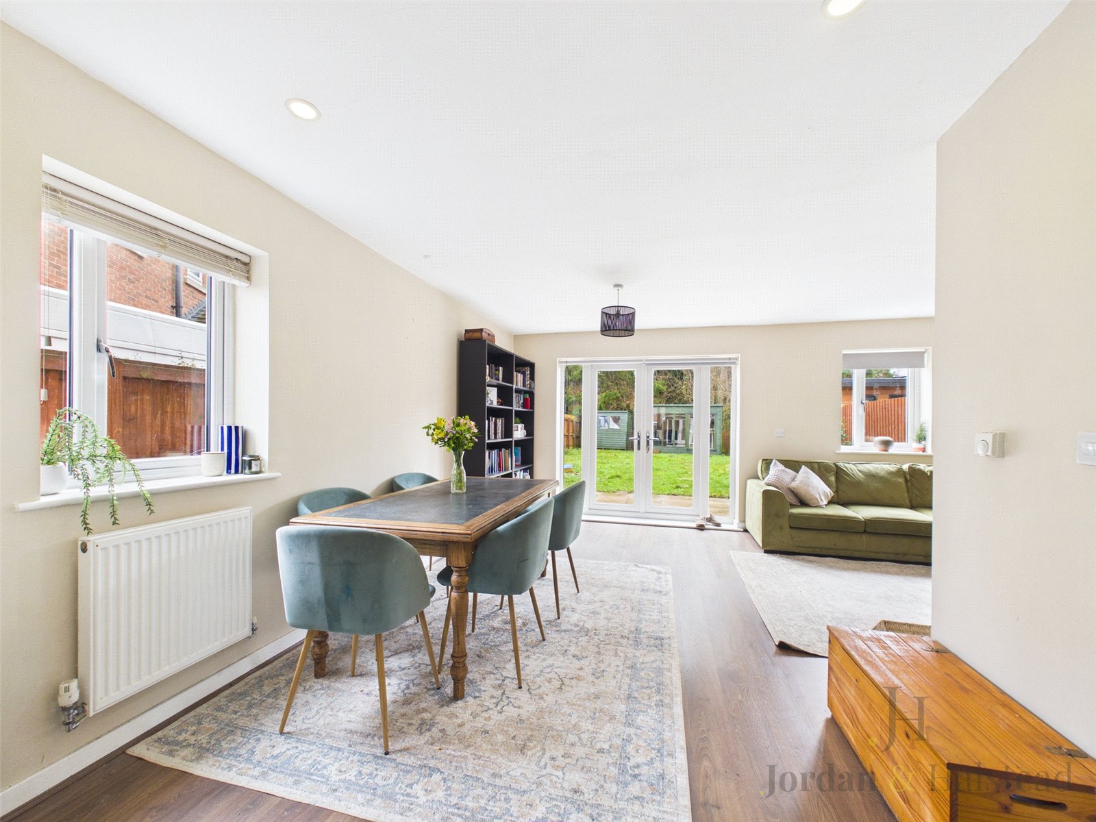 This open plan feel continues, as it opens out into the lounge and French doors, lead outside, to a sizeable and private rear garden, perfect for enjoying summer evenings and alfresco dining.