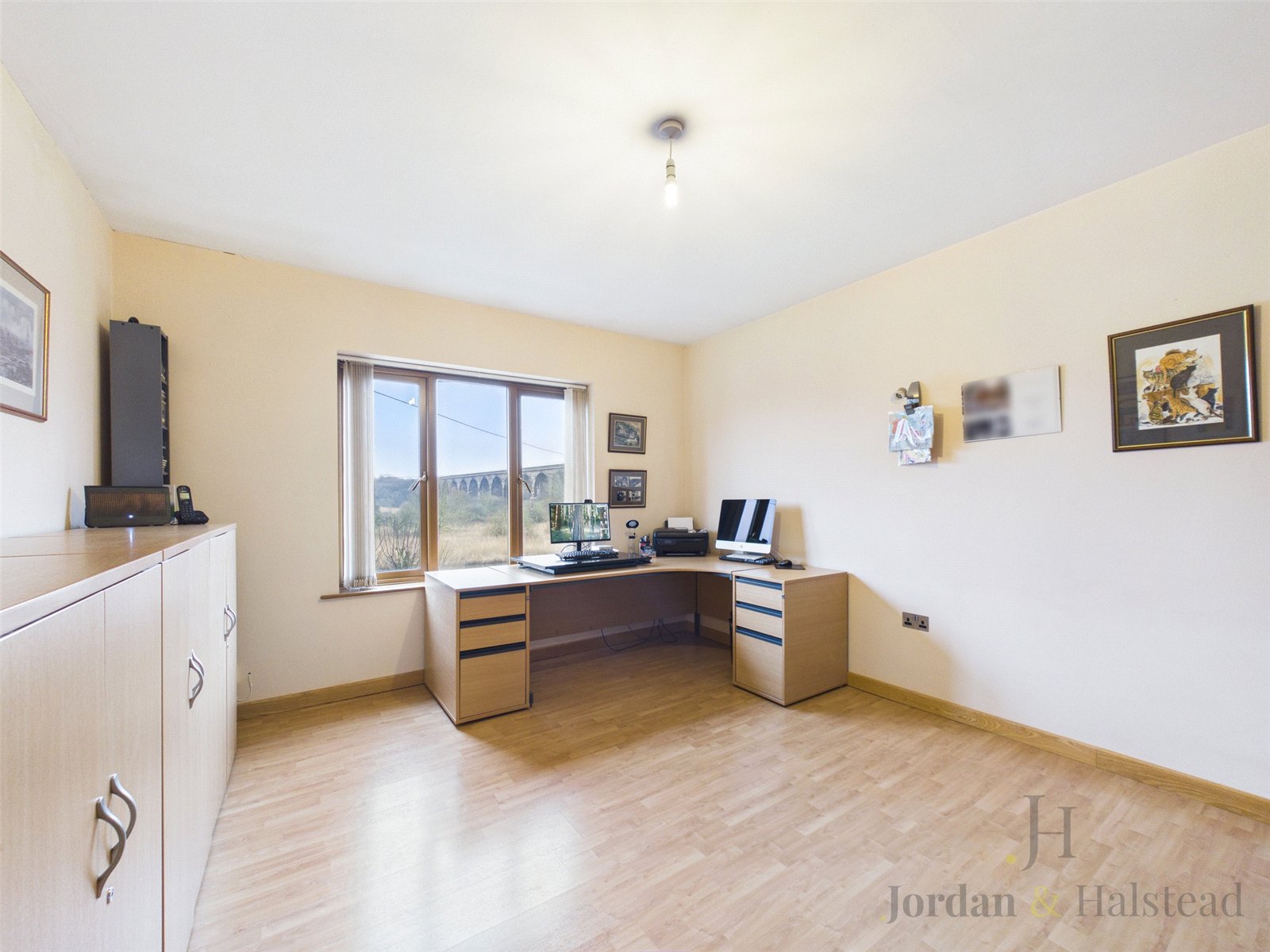 A generous family bathroom with a separate bath and shower provides ample space for family or guests. There is also a separate utility room with space for both a washer and dryer.
