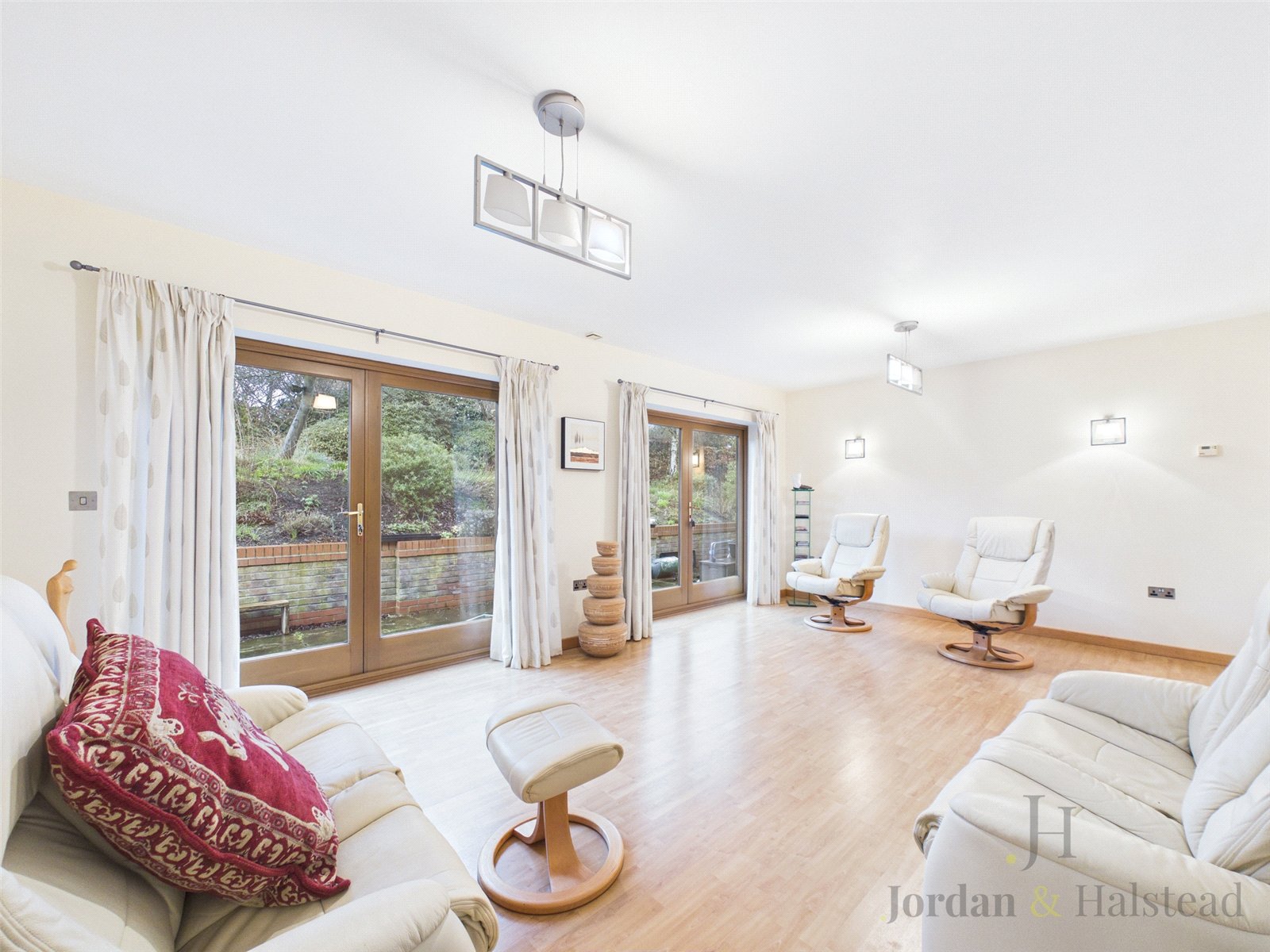 A separate, cosy living room on this floor provides a more intimate space to unwind and relax. It has two double doors leading outside, again allowing natural light.