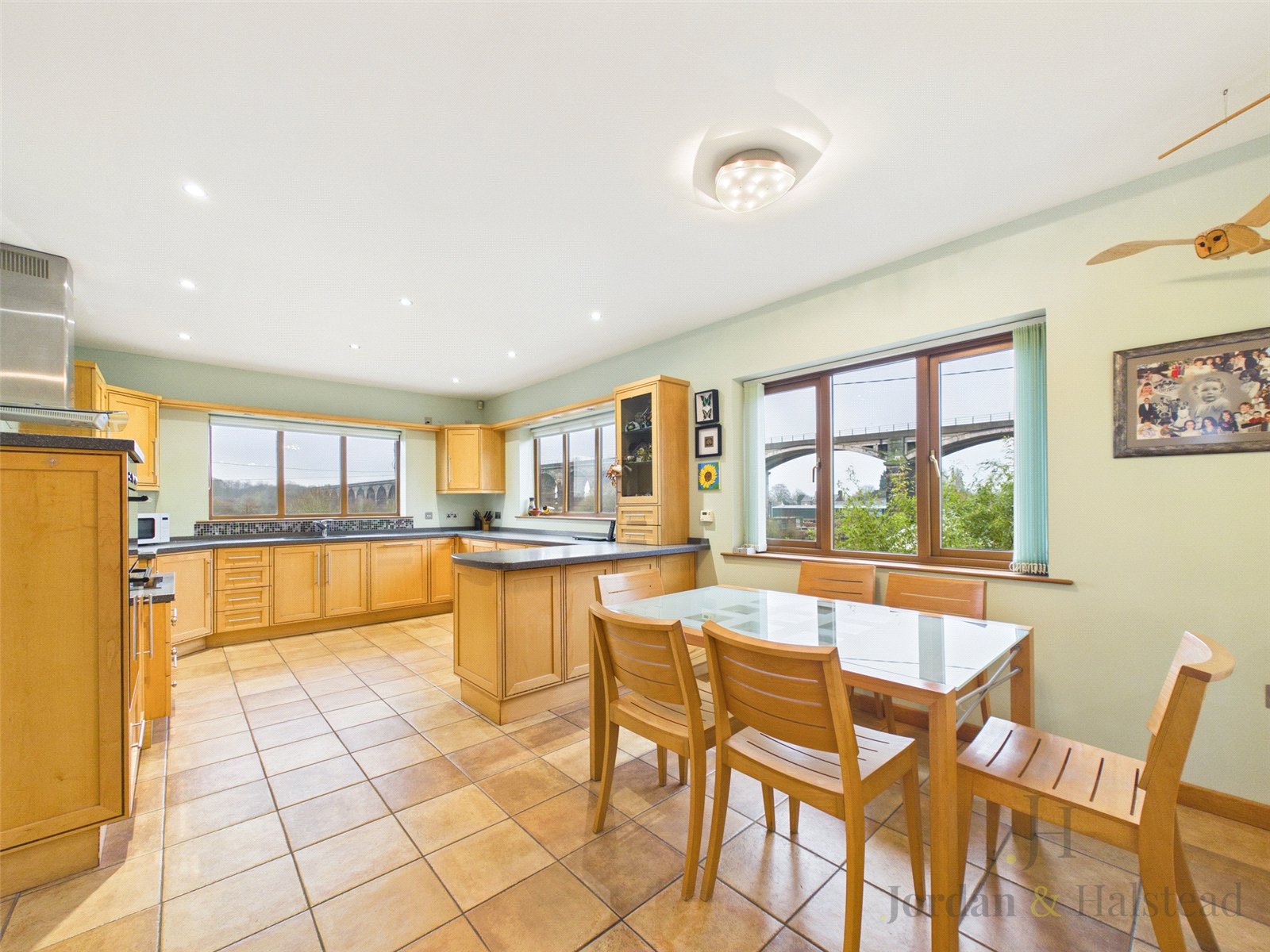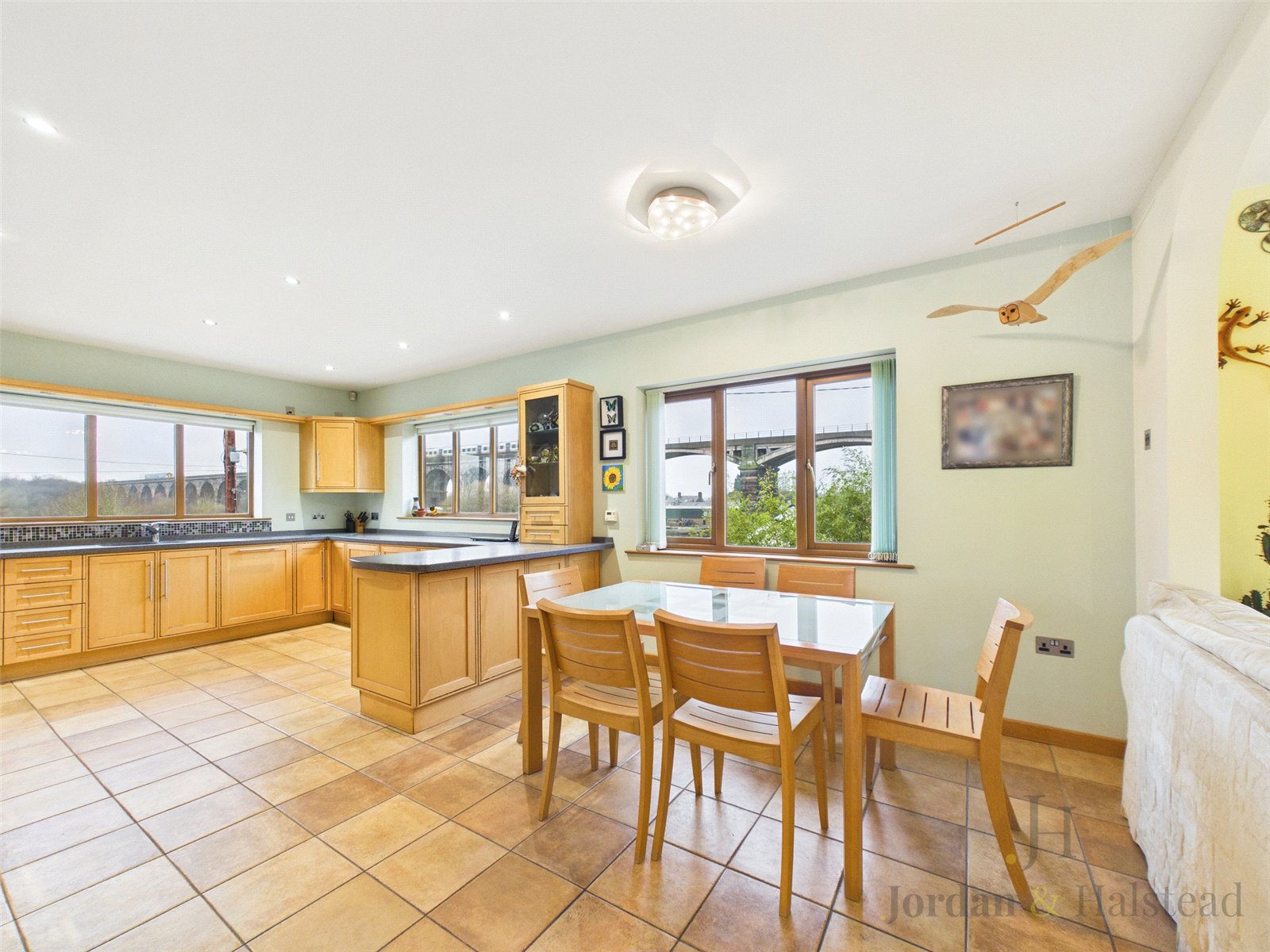 This unique, detached, four/five-bedroom family home can be found at the end of a quiet lane, that runs alongside the tranquil River Weaver.