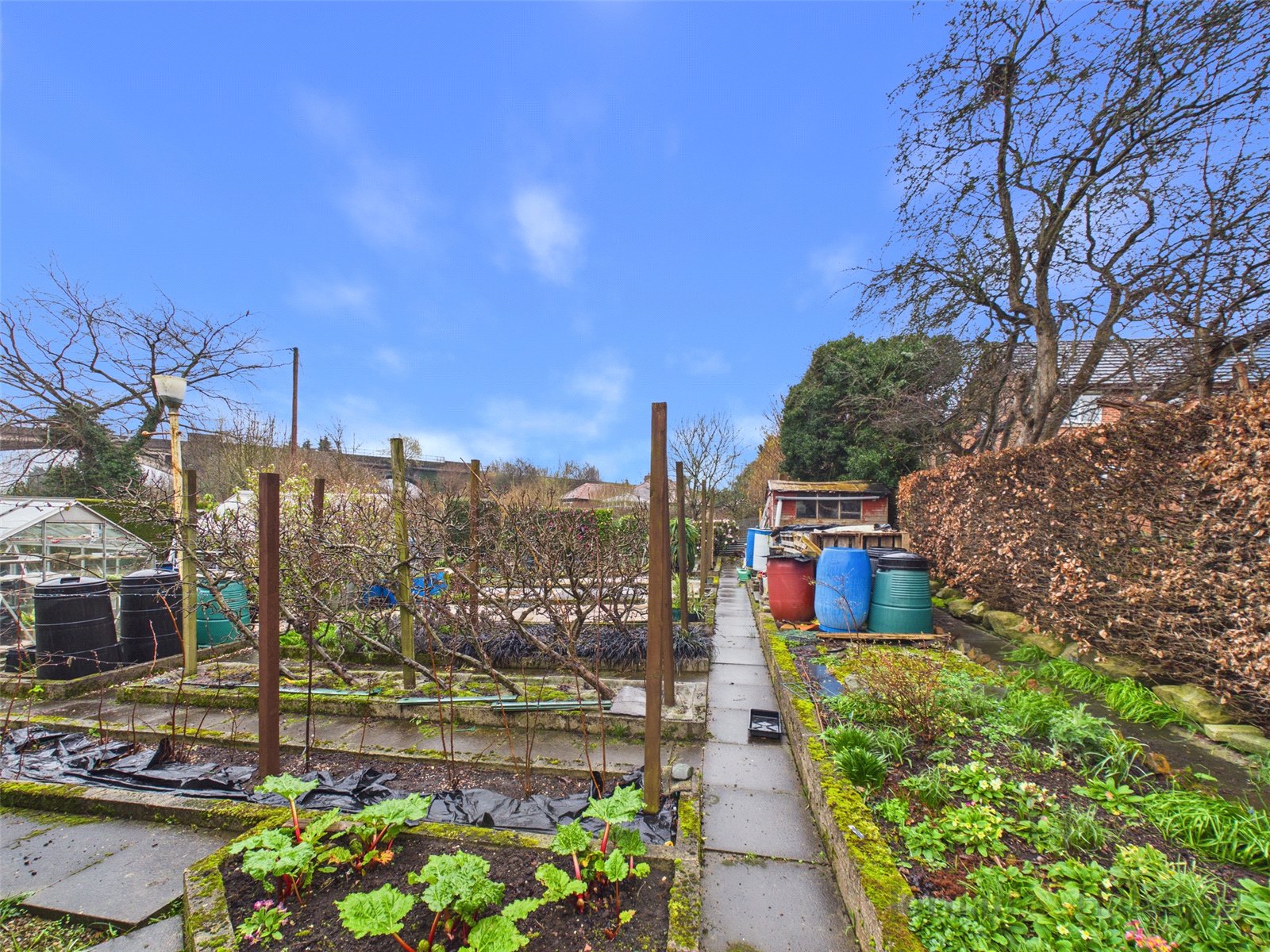 The main garden comprises borders with plants and shrubs, and some lawned areas. The owners have also utilised a large area for growing their own fruit and vegetables, offering a degree of self-sufficiency. There is also a wildlife pond within the garden.